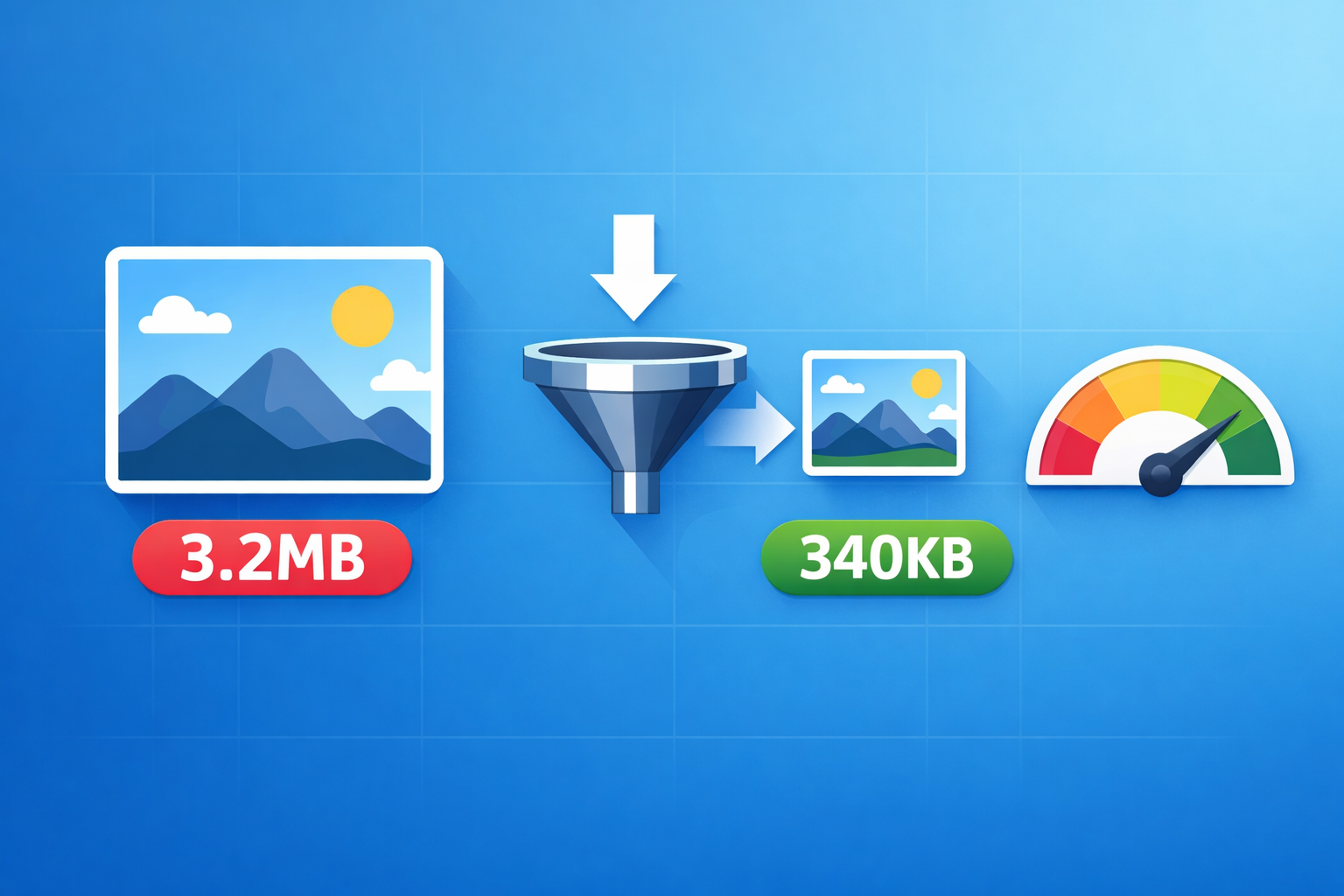 Real example: I compressed a 3.2MB blog header image down to 340KB at 82% quality. The visual difference? Zero. The page load improvement? Huge.